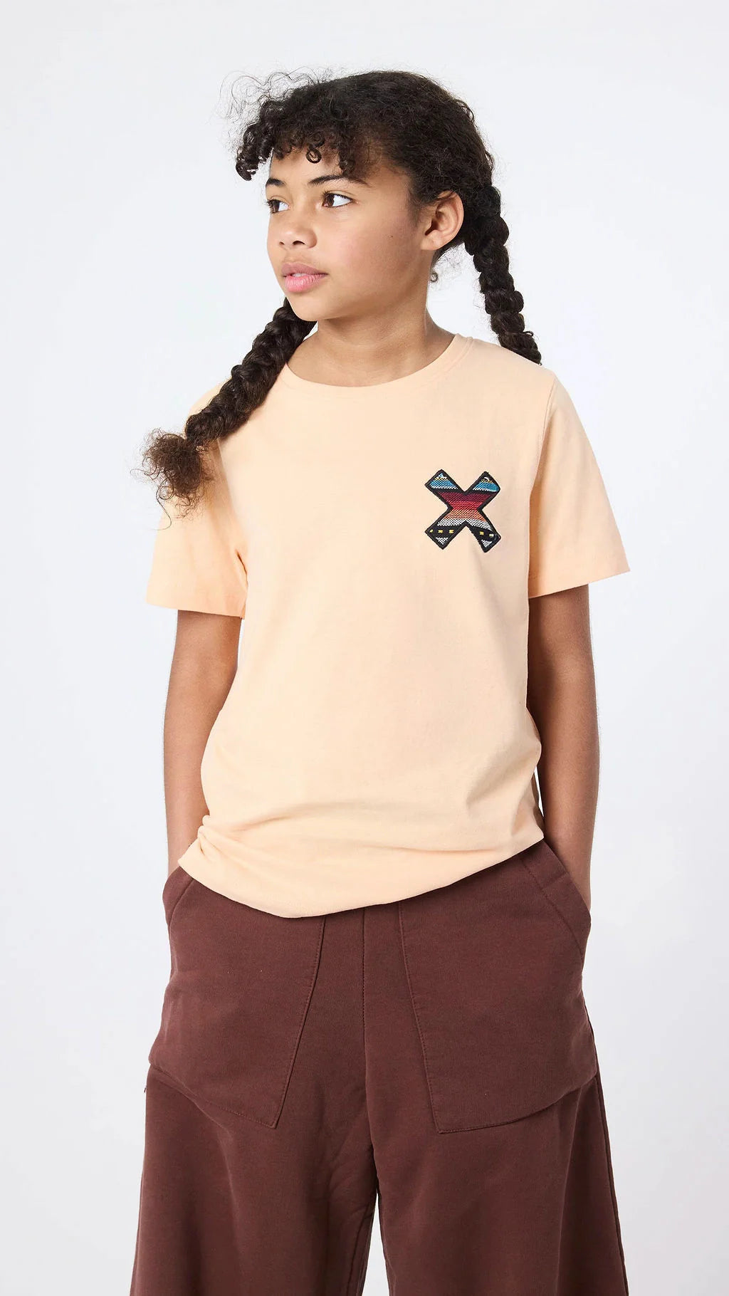 Camiseta con nuestra clásica X bordada: delantera en el pecho y trasera en la espalda. Confeccionada con algodón 100% orgánico y corte regular fit.