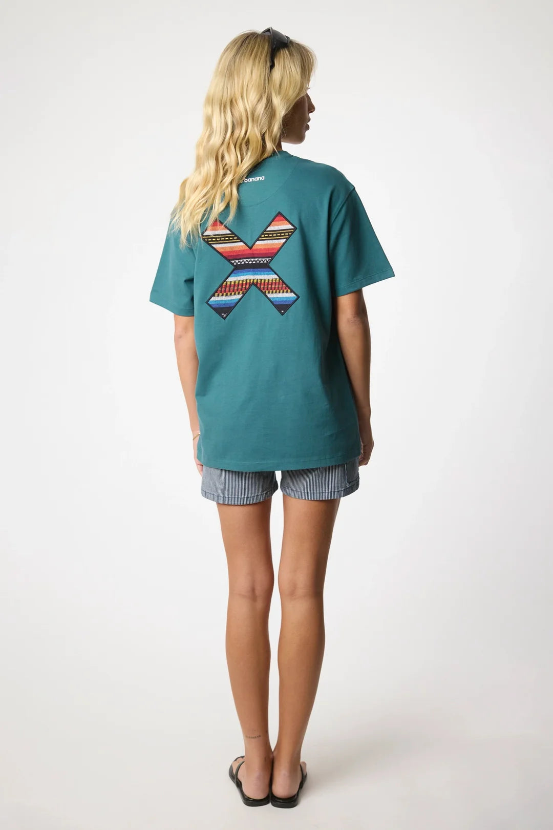 Camiseta con nuestra clásica X bordada: delantera en el pecho y trasera en la espalda. Confeccionada con 100% algodón orgánico y corte regular fit.