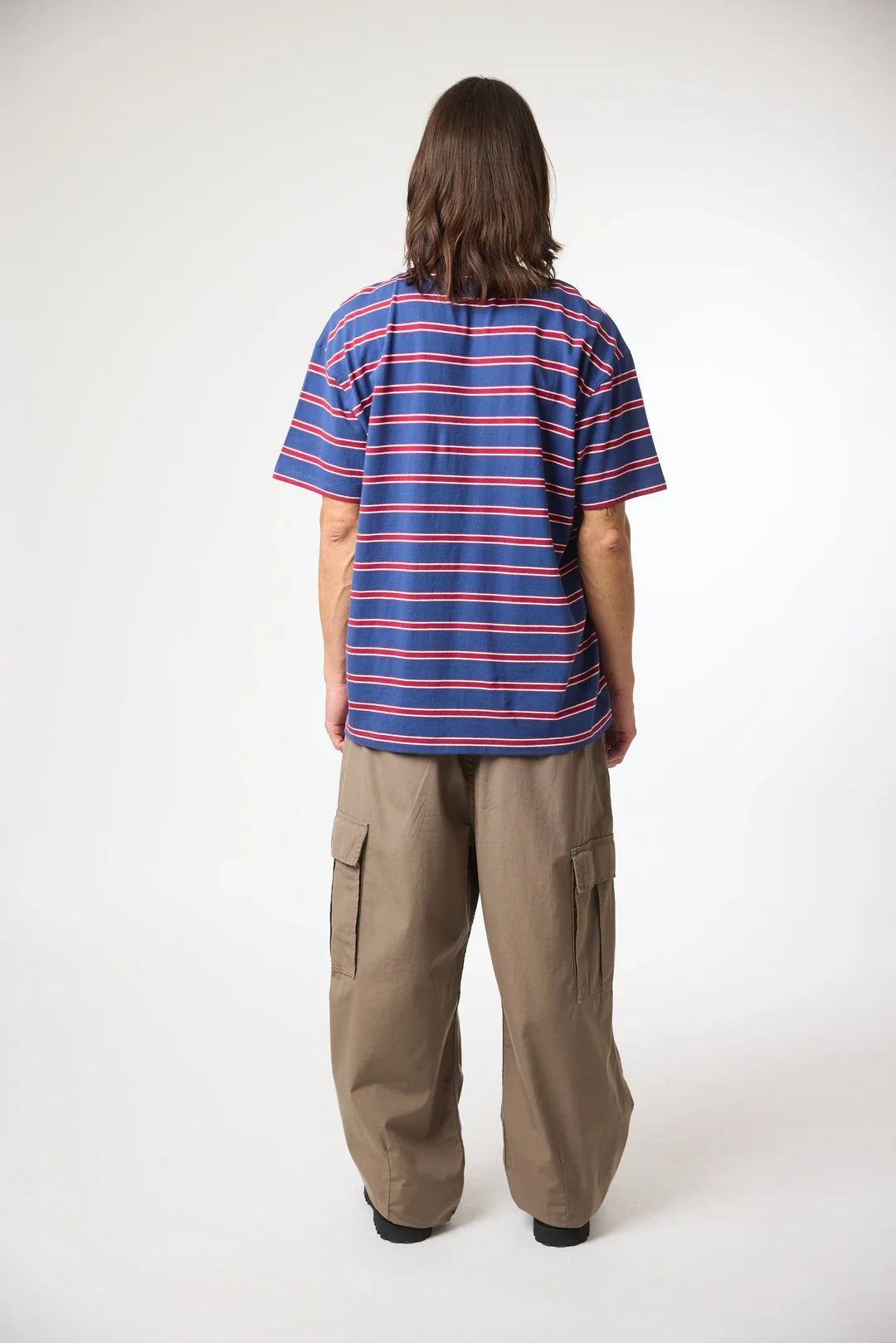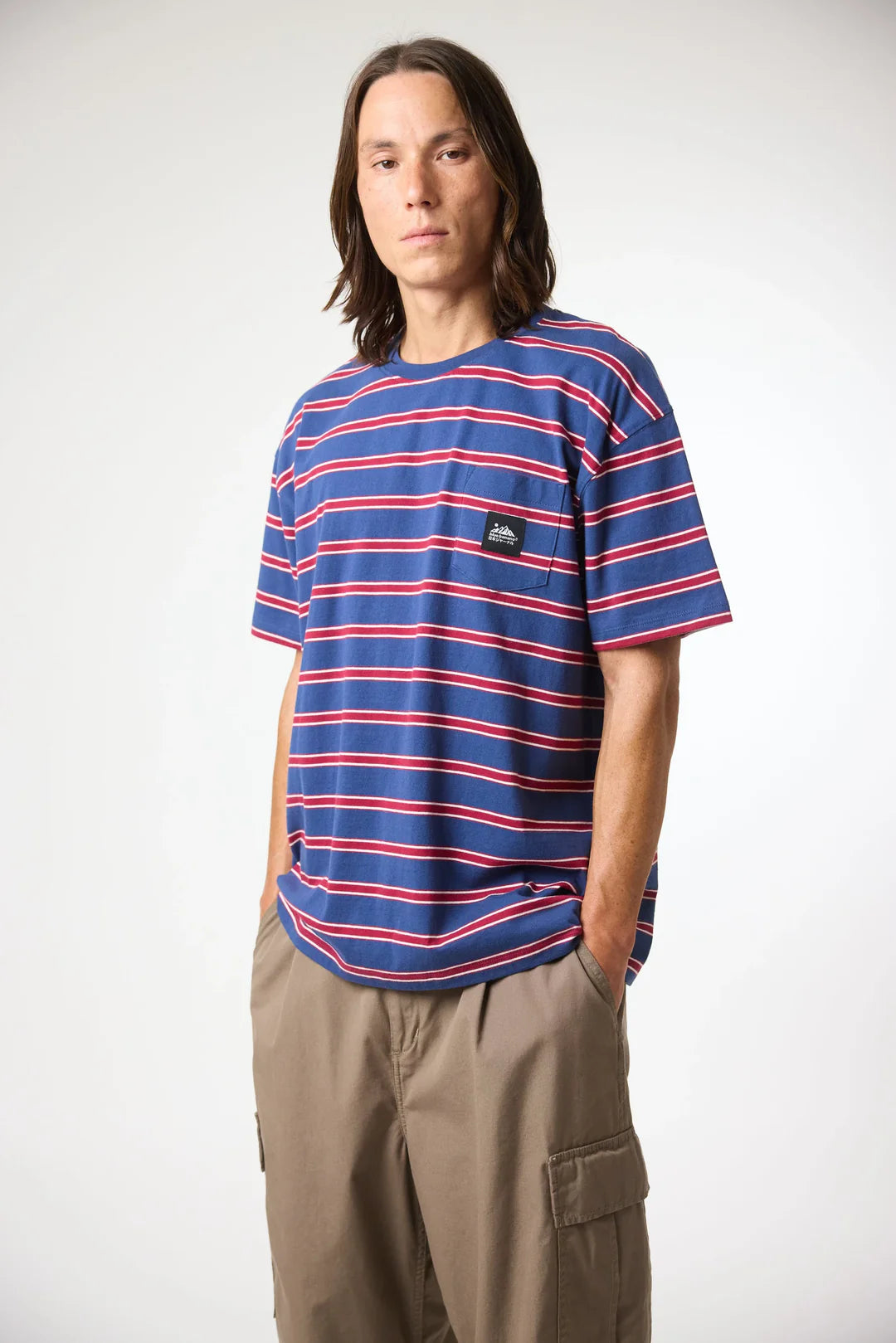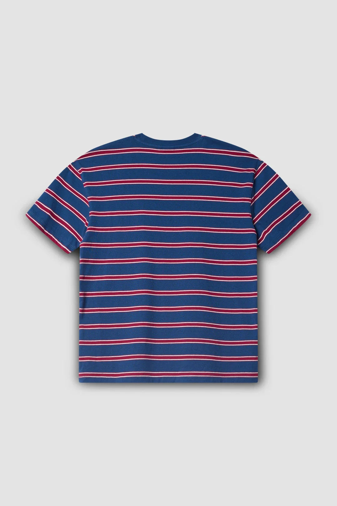 Camiseta a rayas con bordado delantero en la parte del pecho. Confeccionada con algodón 100% orgánico y corte oversize.