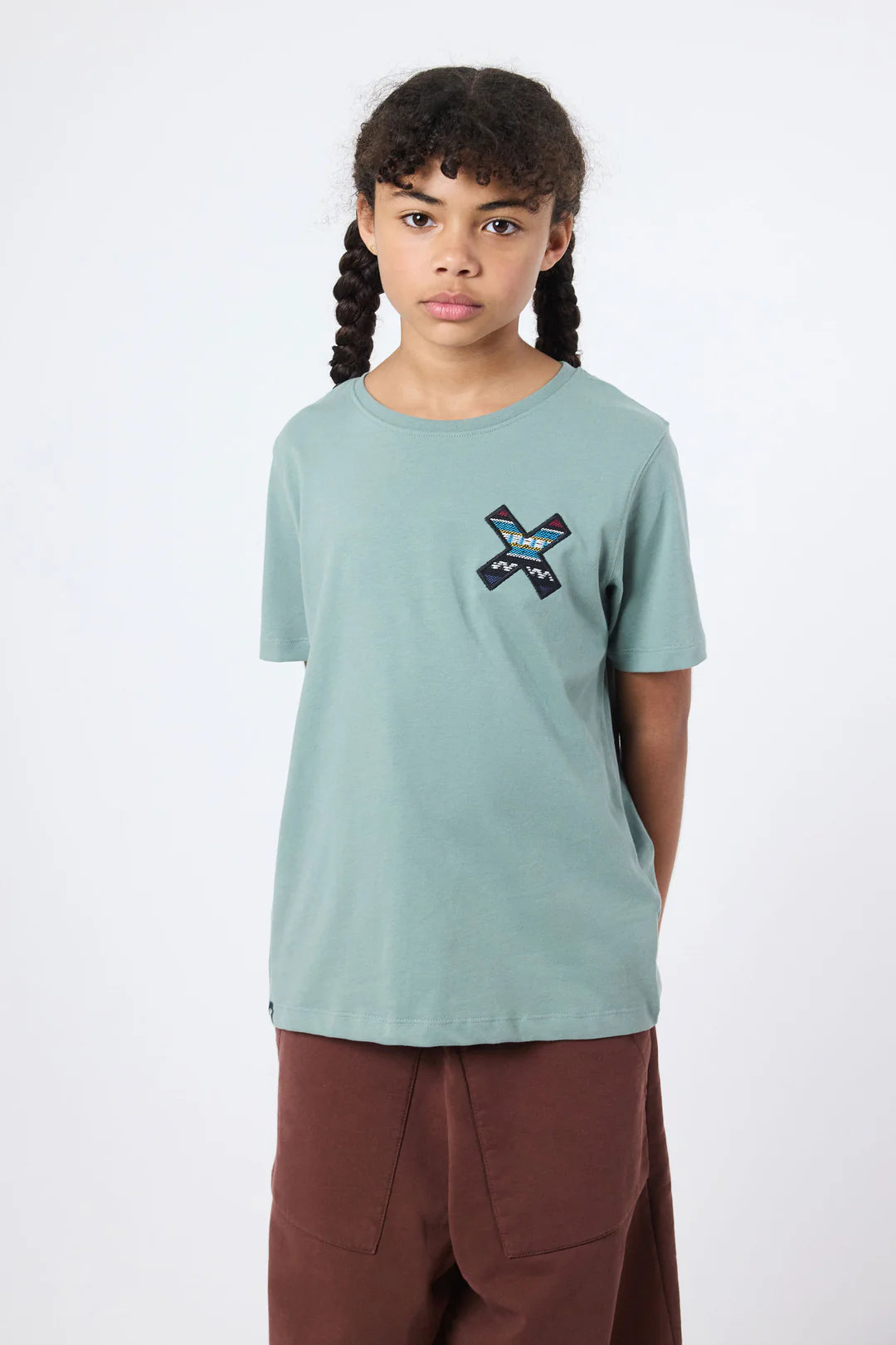 Camiseta con nuestra clásica X bordada: delantera en el pecho y trasera en la espalda. Confeccionada con algodón 100% orgánico y corte regular fit.
