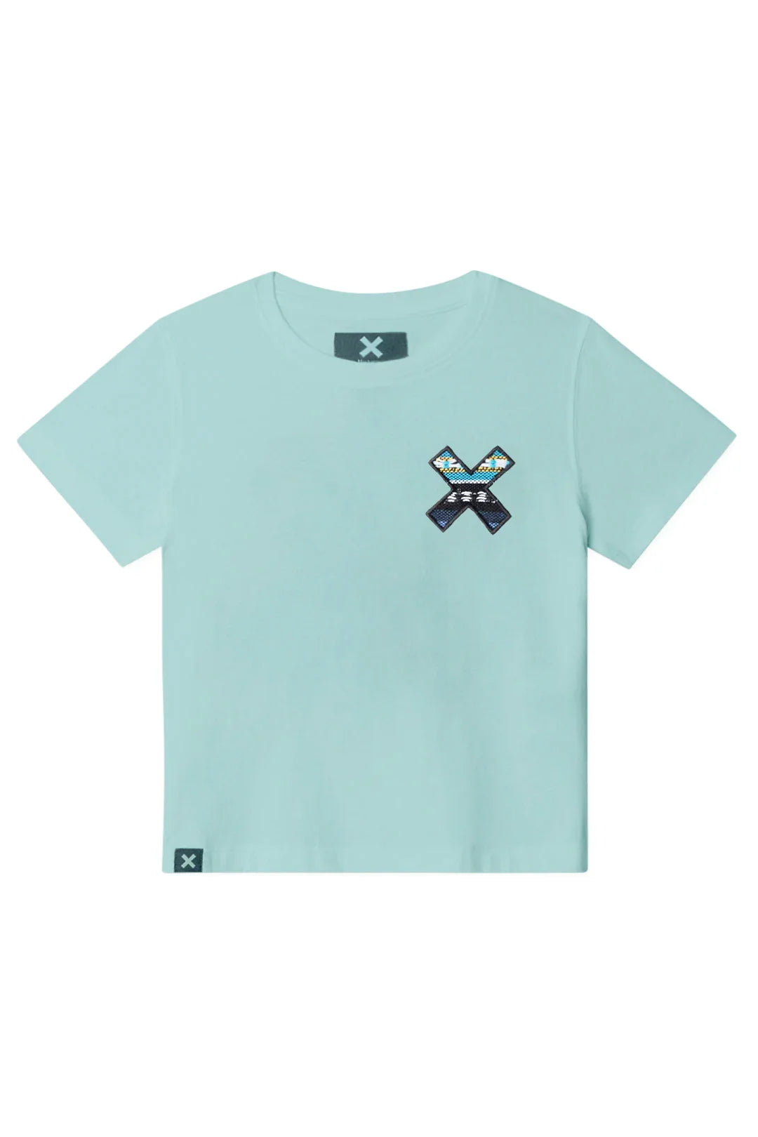 Camiseta con nuestra clásica X bordada: delantera en el pecho y trasera en la espalda. Confeccionada con algodón 100% orgánico y corte regular fit.