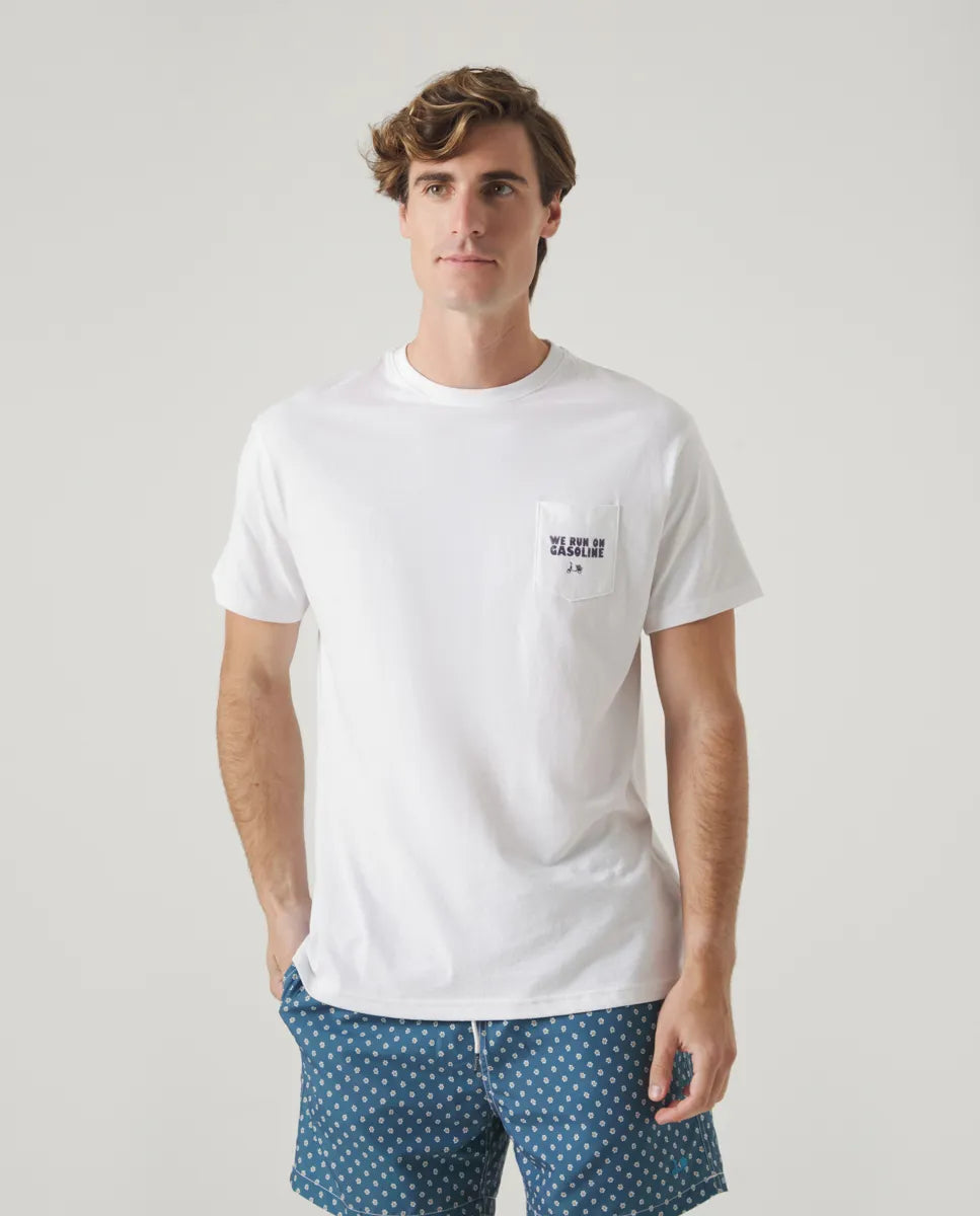Camiseta blanca confeccionada en algodón con corte regular fit. Diseño de cuello redondo acanalado y manga corta, con texto en el torso. Tejido ligero y transpirable. Fabricada en Portugal.