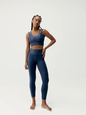 Legging 7/8 elegante que combina un tejido de sutil brillo satinado. Corte láser en el bajo. Incluye un bolsillo oculto en la parte trasera de la cinturilla. Tejido Shape_Tech compacto y ligero para mayor sujeción en tus movimientos. Capa doble de tejido en la entrepierna.