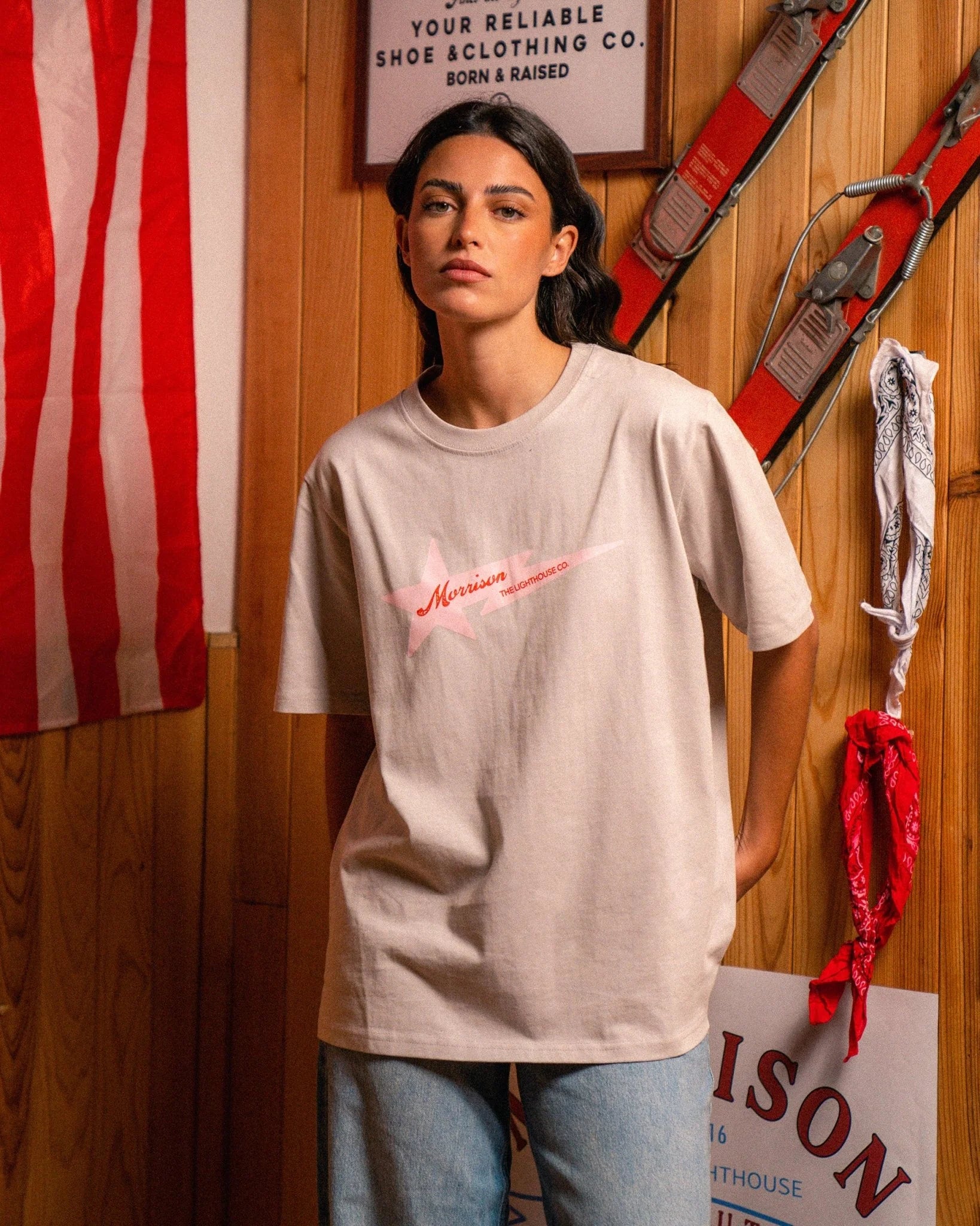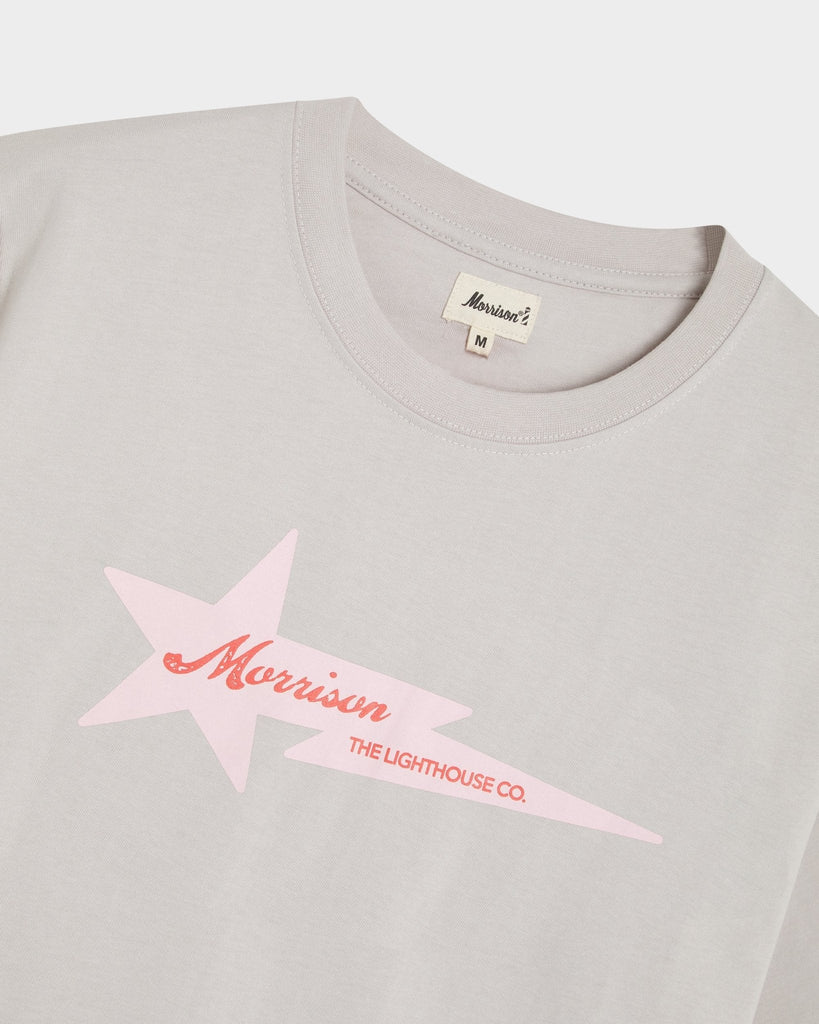 La camiseta Fallen Star Grey ha sido diseñada en gris con print delantero de estrella caída rosa. Regular fit, cuello redondo de canalé y bajo recto para un fit cómodo y versátil. 100% algodón.