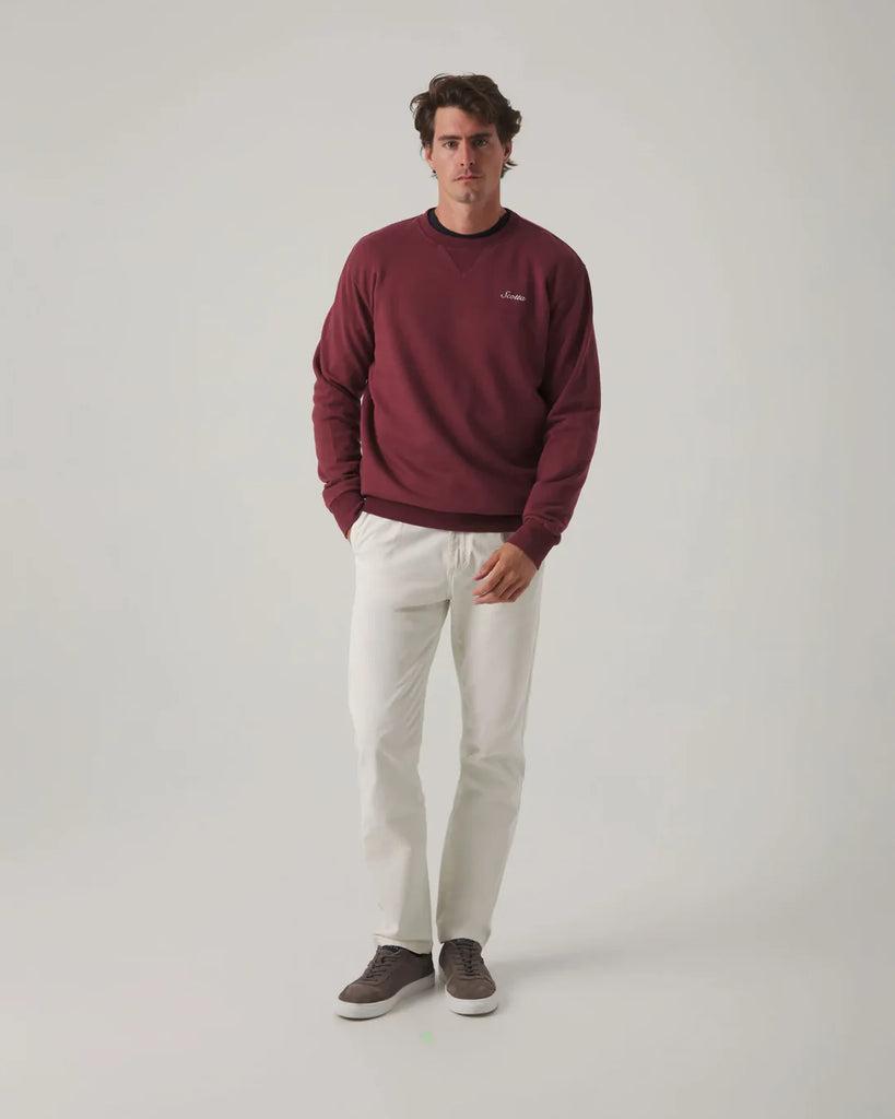 Sudadera en color burdeos de corte regular fit, confeccionada en algodón para un tacto suave y cómodo. Diseño de cuello redondo, y manga larga. Detalle letras “Scotta” en el torso y print trasero. Ideal para un estilo casual y días relajados.
