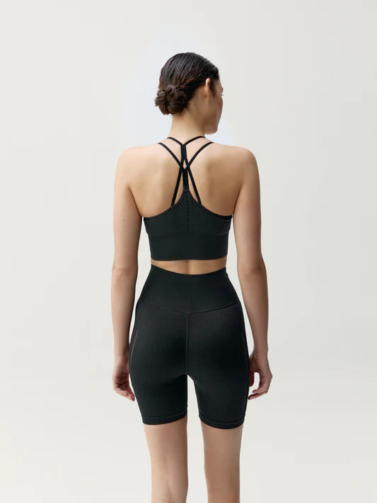 Short confeccionado con tecnología sin costuras, diferentes texturas y detalle de calados. Cintura extra alta y doble, proporcionando máximo confort y agarre. Su tejido “4 Way Stretch” aporta elasticidad y suavidad a la prenda.